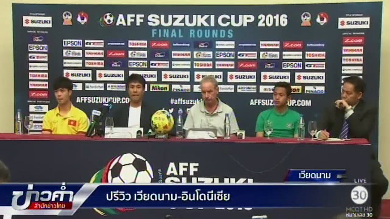 ความเคลื่อนไหวก่อนเกมฟุตบอลชิงแชมป์อาเซียน เอเอฟเอฟ ซูซูกิ คัพ รอบรองชนะเลิศ นัดที่ 2 อีกหนึ่งคู่ ทีมชาติเวียดนามจะเปิดสนามมีดิ่ง สเตเดี้ยม พบกับ อินโดนีเซีย ที่กรุงฮานอย โดยเกมแรกอินโดนีเซียเปิดบ้านชนะมาก่อน 2-1 เกมนี้เหงียน ฮู ถัง หวังว่าทีมเวียดนามจะใช้ความได้เปรียบในการเป็นเจ้าบ้าน พลิกสถานการณ์ผ่านเข้าสู่รอบชิงชนะเลิศได้ โดยยืนยันลูกทีมไม่กดดันและมั่นใจว่าทีมจะคว้าชัยชนะในเกมนี้