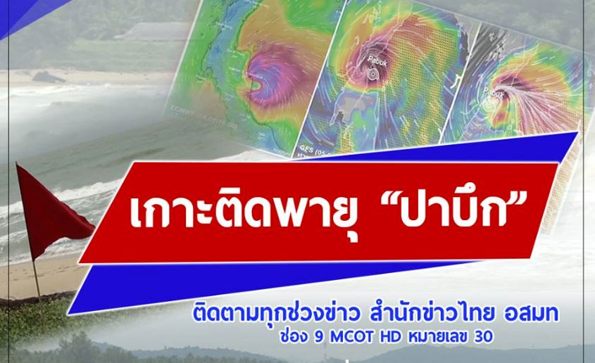 นายเขมทัตต์ พลเดช กรรมการผู้อำนวยการใหญ่ บริษัท อสมท จำกัด (มหาชน) กล่าวว่า ตามที่กรมอุตุนิยมวิทยาได้ออกประกาศเรื่องพายุโซนร้อน “ปาบึก” (PABUK) นั้น จากการตรวจสอบสภาพอากาศกับกรมอุตุนิยมวิทยาล่าสุดพบว่า พายุโซนร้อน “ปาบึก” มีแนวโน้มเคลื่อนขึ้นฝั่งบริเวณ จ.นครศรีธรรมราช ช่วงค่ำวันนี้ (4 ม.ค.62) ทำให้ฝนตกเป็นวงกว้าง และฝนตกหนักถึงหนักมากในหลายพื้นที่ รวมถึงอ่าวไทยมีคลื่นสูง 3-5 เมตร ทะเลอันดามันคลื่นสูง 2-3 เมตร และมีฝนตกหนักถึงหนักมากบางแห่ง ในช่วงวันที่ 3-5 มกราคม 2562 โดยเฉพาะบริเวณ จ.เพชรบุรี ประจวบคีรีขันธ์ ชุมพร สุราษฎร์ธานี นครศรีธรรมราช พัทลุง สงขลา ปัตตานี ยะลา นราธิวาส ระนอง พังงา ภูเก็ต กระบี่ ตรัง และสตูล อาจทำให้เกิดน้ำท่วมฉับพลัน น้ำป่าไหลหลาก และคลื่นลมแรง