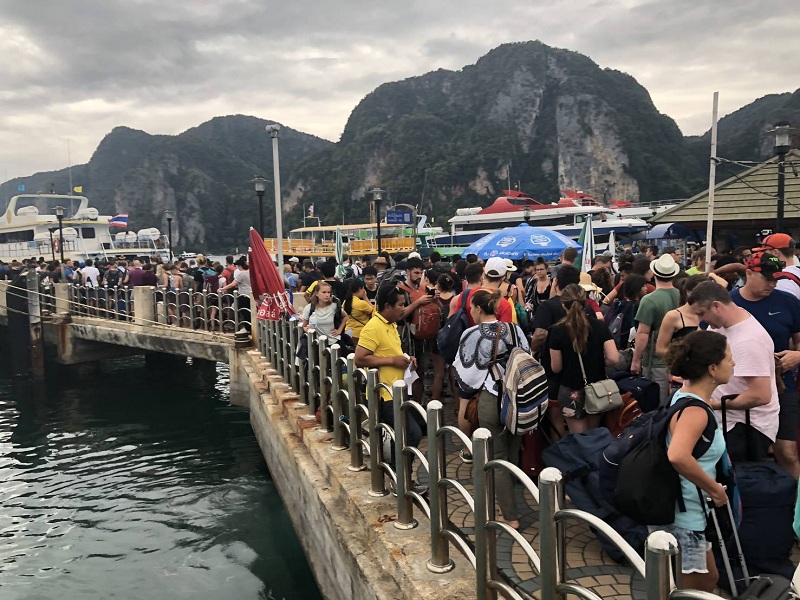 นายสมควร ขันเงิน รองผู้ว่าราชการจังหวัดกระบี่ กล่าวว่า วันนี้ (4 ม.ค.) ได้รับรายงานจากนายประเสริฐ วงศ์นา รอง นายกองค์การบริหารส่วนตำบล (อบต.) อ่าวนาง อ.เมืองว่า นักท่องเที่ยวพากันมารออยู่ที่ท่าเรือเกาะพีพีจำนวนมาก เพื่อเดินทางกลับขึ้นฝั่ง เพราะเกรงว่าจะได้รับผลกระทบจากพายุปาบึกและเรือโดยสารจะหยุดให้การบริการ จึงทำให้เกิดความชุลมุนขึ้น เบื้องต้นได้ประสานเจ้าหน้าที่ฝ่ายปกครองและตำรวจคอยอำนวยความสะดวก พร้อมชี้แจงทำความเข้าใจควบคู่กัน เพื่อไม่ให้นักท่องเที่ยววิตกกังวลเกินไป