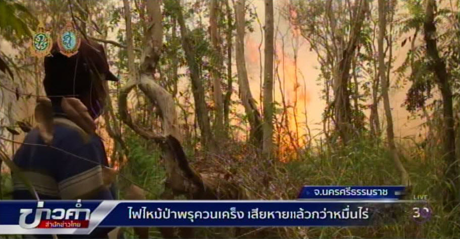 ไฟไหม้ป่าพรุควนเคร็ง พื้นที่ 2 อำเภอของจังหวัดนครศรีธรรมราช คือที่ตำบลบ้านตูล อำเภอชะอวด และตำบลสวนหลวง อำเภอเฉลิมพระเกียรติ 3-4 จุดอย่างรุนแรง ชาวบ้านในพื้นที่ระบุว่า เกิดเพลิงไหม้ป่าพรุตั้งแต่ช่วงบ่ายของวานนี้ ขณะที่เจ้าหน้าที่ป้องกันและบรรเทาสาธารภัยจังหวัดนครศรีธรรมราชร่วมกับองค์กรท้องถิ่นเข้าฉีดน้ำและสามารถดับได้ในระดับหนึ่งแต่ยังดับไม่สนิท กระทั่งช่วงเที่ยงของวันนี้เพลิงที่ยังคุกรุ่นอยู่ในพรุใต้ดินถูกลมกรรโชคแรงทำให้เกิดลุกไหม้ขึ้นมาอีกครั้งและรุนแรงกว่าวันก่อนมาก