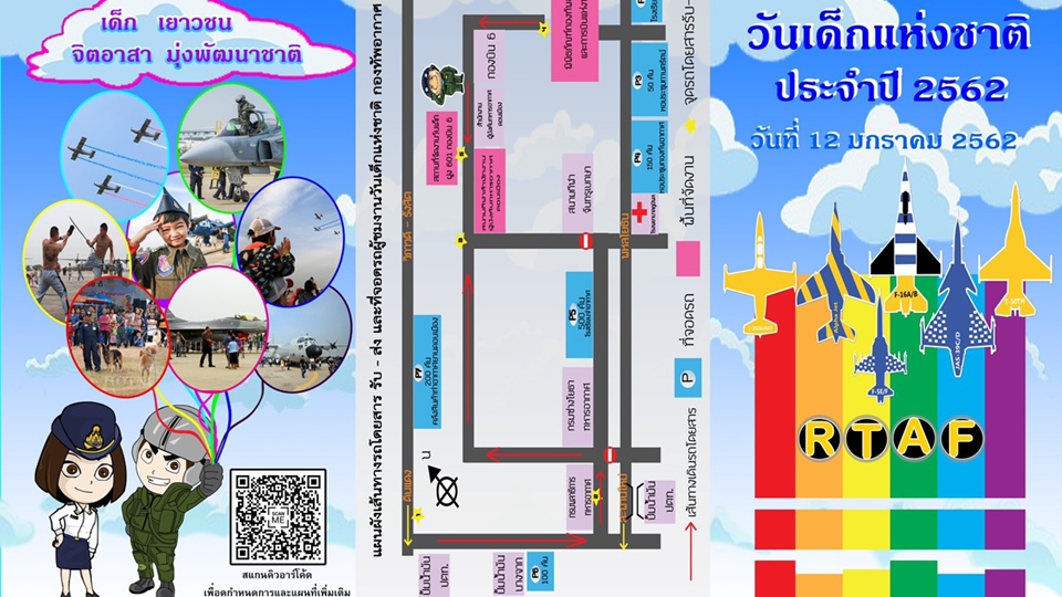 กรุงเทพฯ 8 ม.ค.-โฆษกกองทัพอากาศ ชวนเด็กและเยาวชนร่วมงานวันเด็กแห่งชาติ ระดมอากาศยาน “โชว์การบิน รับวันเด็กปี 62” ขณะที่ กองทัพไทยไทย เชิญชวนน้อง ๆ เที่ยวงานวันเด็กแห่งชาติประจำปี 2562 ภายใต้แนวคิด “ท่องแดนมหัศจรรย์กับหนูน้อยนักผจญภัย”