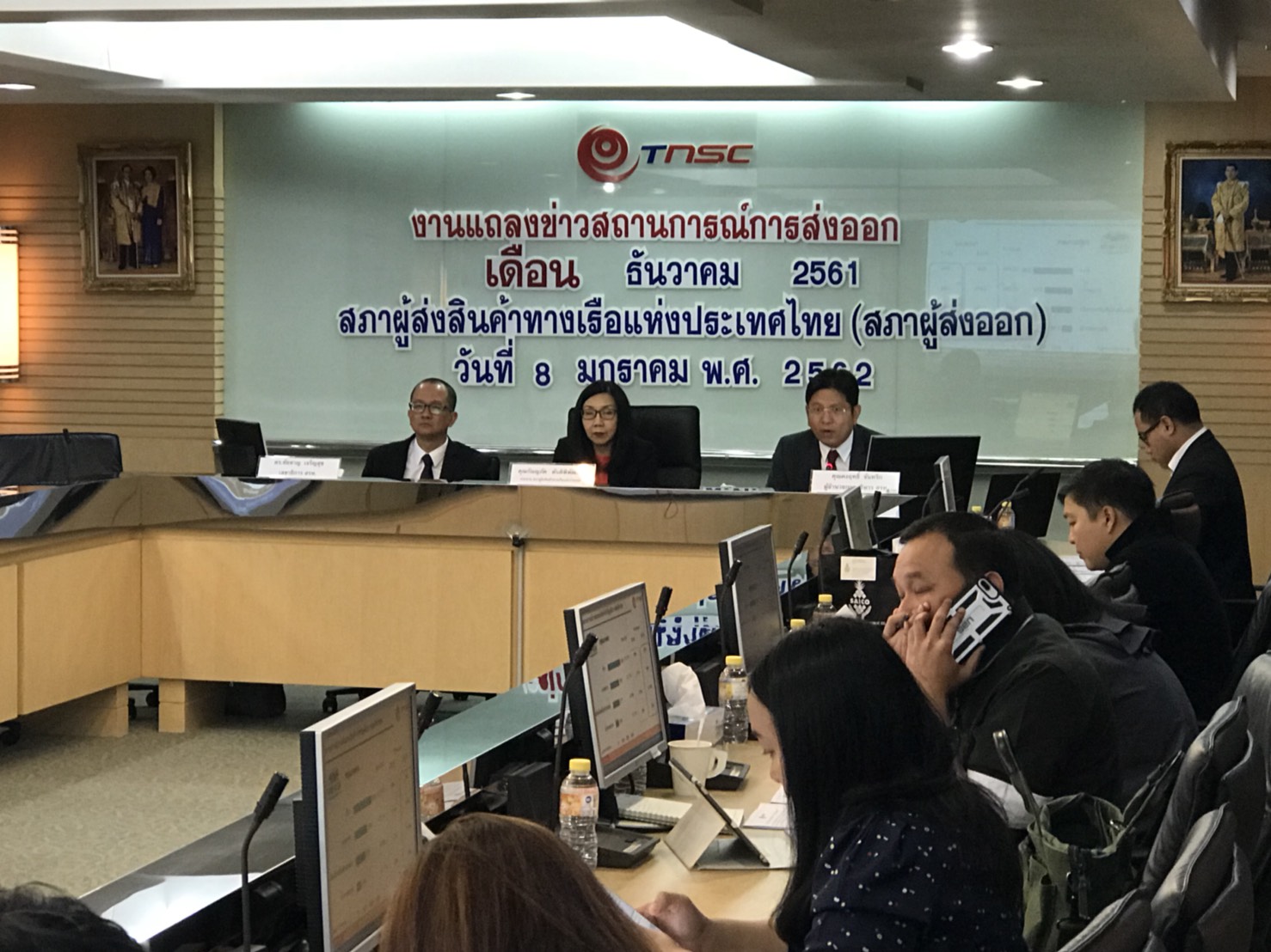 นางสาวกัณญภัค ตันติพิพัฒนพงศ์ ประธานสภาผู้ส่งออกสินค้าทางเรือแห่งประเทศไทย หรือ สรท. ร่วมกับนายชัยชาญ เจริญสุข เลขาธิการ สรท.และนายคงฤทธิ์ จันทริก ผู้อำนวยการบริหาร สรท. เปิดเผยถึงสถานการณ์การส่งออกเดือนธันวาคม 2561 ว่า ภาพรวมการส่งออกเดือนพฤศจิกายน 2561 มีมูลค่า 21,237 ล้านดอลลาร์สหรัฐ หดตัวร้อยละ 0.95 เมื่อเทียบกับเดือนเดียวกันของปีก่อน อย่างไรก็ตาม ในช่วงเดือนมกราคม-พฤศจิกายน 2561 ไทยส่งออกรวมมูลค่า 232,725 ล้านดอลลาร์สหรัฐ ขยายตัวร้อยละ 7.3 เมื่อเทียบกับช่วงเดียวกันของปีก่อน