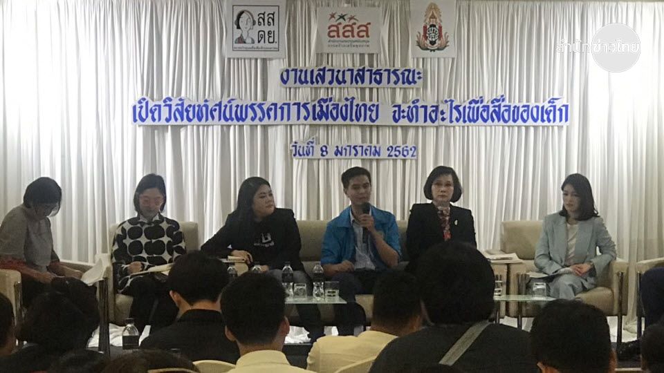 กรุงเทพฯ 8 ม.ค. – เวทีเปิดวิสัยทัศน์ พรรคการเมืองไทยจะทำอะไรเพื่อสื่อของเด็ก เห็นตรงกันที่จะสนับสนุนสื่อที่ดีให้กับเด็กและเยาวชน ลดหย่อนภาษีให้ผู้ผลิตสื่อเด็ก และจัดงบตั้งกองทุนสื่อสร้างสรรค์เด็ก