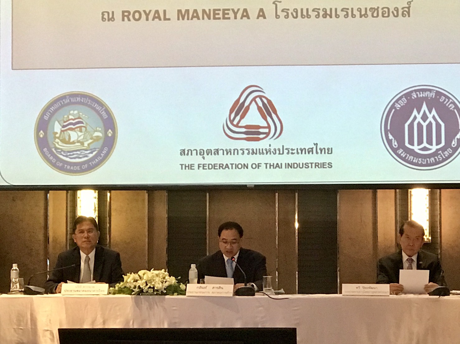 นายกลินท์ สารสิน ประธานกรรมการหอการค้าไทยและสภาหอการค้าแห่งประเทศไทย กล่าวว่า ที่ประชุมคณะกรรมการร่วม 3 สถาบัน หรือ กกร.คาดการณ์เศรษฐกิจไทยปีนี้จะขยายตัวได้ร้อยละ 4-4.3 ซึ่งอยู่ในระดับใกล้เคียงกับปีก่อนที่ขยายตัวร้อยละ 4.3 โดยทิศทางเศรษฐกิจไทยมีแนวโน้มเติบโตในอัตราที่ชะลอลงทั้งการส่งออกและการท่องเที่ยว ซึ่งเผชิญความเสี่ยงจากการชะลอตัวของเศรษฐกิจสหรัฐและจีน ผลจากสงครามทางการค้าที่มีอย่างต่อเนื่อง คาดการส่งออกปีนี้ขยายตัวร้อยละ 5-7 ลดลงจากปีก่อนที่ขยายตัวร้อยละ 8 ทำให้การขยายตัวของเศรษฐกิจต้องพึ่งพิงการใช้จ่ายและการลงทุนในประเทศมากขึ้น โดยเฉพาะการลงทุนของภาครัฐที่จะมีบทบาทนำการลงทุนของเอกชน