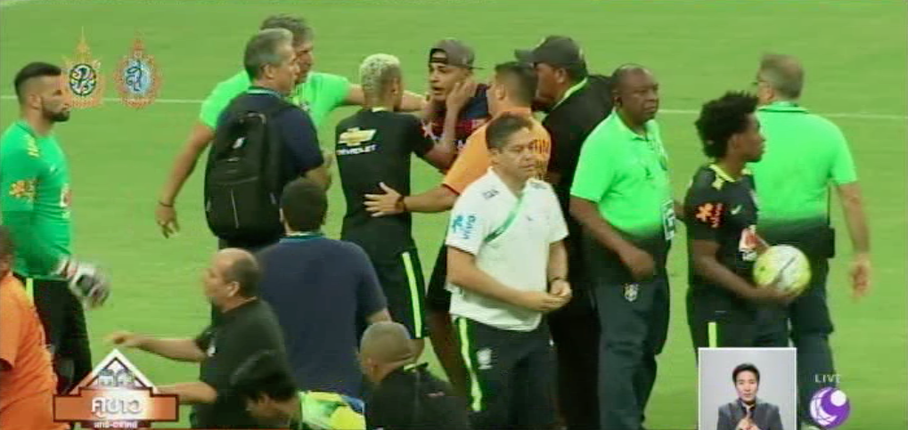 โดยนักเตะที่เป็นเป้าหมายของแฟนบอล คือ เนย์มาร์ ซูเปอร์สตาร์จากบาร์เซโลนา ที่เพิ่งพาทีมฟุตบอลชายบราซิล ดวลจุดโทษเอาชนะ เยอรมนี คว้าเหรียญทองโอลิมปิกเกมส์สมัยแรกใน รีโอเกมส์ 2016 เมื่อเดือนสิงหาคมที่ผ่านมา ที่ถูกแฟนบอลใส่เสื้อของบาร์ซา วิ่งเข้าไปกอดจนเนย์มาร์ล้มลงกับพื้นก่อนที่เจ้าหน้าที่จะนำตัวแฟนบอลเหล่านั้นออกจากสนาม เช่นเดียวกับ กาเบรียล เฆซุส นักเตะใหม่ของแมนฯ ซิตี้ และดานี อัลเวส ที่ถูกแฟนบอลวิ่งเข้าถึงตัวได้เช่นกัน โดยสถานการณ์ของบราซิลในโซนอเมริกาใต้ตอนนี้ รั้งอันดับ 5 มี 12 คะแนน ตามหลังอาร์เจนตินา จ่าฝูง 2 คะแนน และตามหลัง โคลอมเบีย อันดับ 3 ที่จะพบกันวันที่ 7 กันยายนนี้ 1 คะแนน. -สำนักข่าวไทย