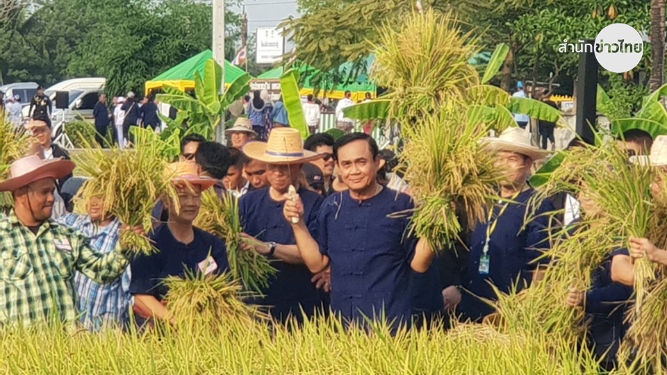 พล.อ.ประยุทธ์ กล่าวกับชาวนาในพื้นที่ว่า นายกรัฐมนตรีมุ่งมั่นทำงานเพื่อแก้ปัญหาและบรรเทาความเดือดร้อนของประชาชน และที่มาเกี่ยวข้าวก็ไม่ได้มาสร้างภาพ พร้อมแนะนำให้เกษตรกร รวมกลุ่มกันพัฒนาการเพาะปลูก ผลผลิต และการสร้างรายได้ เช่น กลุ่มวิสาหกิจชุมชน กลุ่มเกษตรปลอดภัย GAP และกลุ่ม โอท็อป รัฐบาลได้จัดระเบียบการค้าขายให้ทุกคนได้รับสิทธิเท่าเทียม และป้องกันการเรียกรับผลประโยชน์ โดยแนะนำว่าพ่อค้า แม่ค้า ต้องสร้างการรับรู้ภายนอกใหม่ ๆ และใช้โซเชียลให้เป็นประโยชน์ เช่น ขายออนไลน์