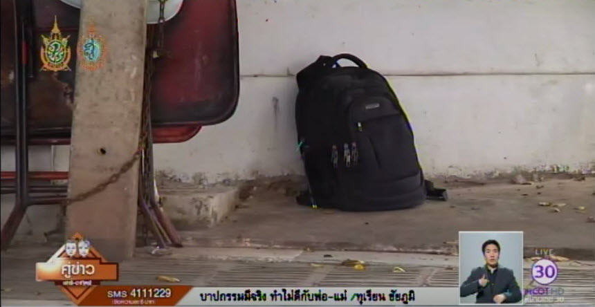 ภาพกระเป๋าที่เจ้าหน้าที่ได้รับแจ้งจาก รปภ.บ้านพักผู้พิพากษาศาลเยาวชนและศาลจังหวัดขอนแก่น ที่หลายคนพบเห็นแล้วคิดว่ามีวัตถุระเบิดซุกซ่อนไว้ เนื่องจากมีสายไฟฟ้าโผล่ออกมาจากกระเป๋า สอบถาม นายเสถียร นาเมืองจันทร์ รปภ.ประจำบ้านพักผู้พิพากษาศาลเยาวชนและศาลจังหวัดขอนแก่น ให้การว่า เมื่อคืนได้เข้าเวรปฎิบัติหน้าที่ตามปกติ กระทั่งช่วงเช้าเวลาประมาณ 06.00 น. สังเกตเห็นกระเป๋าวางพิงรั้ว จึงรอดูอยู่เผื่อเจ้าของกระเป๋า จะลืมแล้วกลับมาเอา แต่รออยู่ประมาณ 1 ชั่วโมง ก็ยังไม่มีใครมาเอา และเมื่อชะโงกดูในกระเป๋าก็พบมีสายโผล่ออกมา จึงเห็นผิดสังเกต รีบแจ้งเจ้าหน้าที่เข้าตรวจสอบ