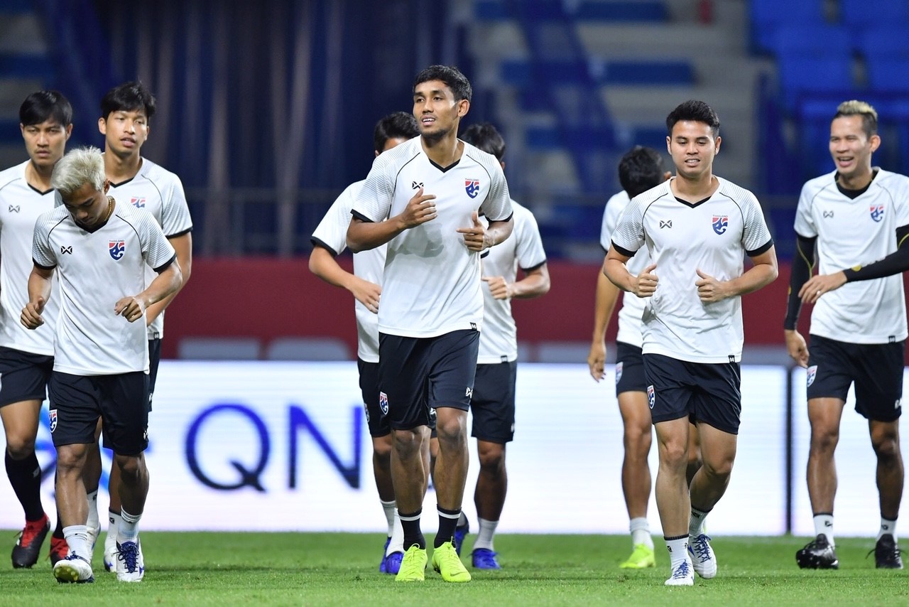 โดยช้างศึก ลงฝึกซ้อมครั้งสุดท้ายที่ อัล มัคตูม สเตเดียม สนามแข่งขันจริง เมื่อวานที่ผ่านมา ขณะที่ ธีรศิลป์ ในฐานะกองหน้ากัปตันทีม กล่าวว่า นัดแรกผ่านไปแล้ว ตอนนี้ทุกคนพยายามมุ่งมั่น ที่จะเจอกับ บาห์เรน เต็มที่ แม้ว่าจะมีการเปลี่ยนแปลงเกิดขึ้น แต่จริงๆ แล้ว บรรยากาศในทีมไม่ได้แย่ลงเลย ทุกคนพยายามให้กำลังใจกัน ดังนั้นส่วนตัวผมคิดว่า ขวัญกำลังใจทุกคนยังดีครับ และอย่างที่บอก ทุกคนยังพร้อมที่จะสู้ เพื่อคว้าผลการแข่งขันที่ดีให้ได้
