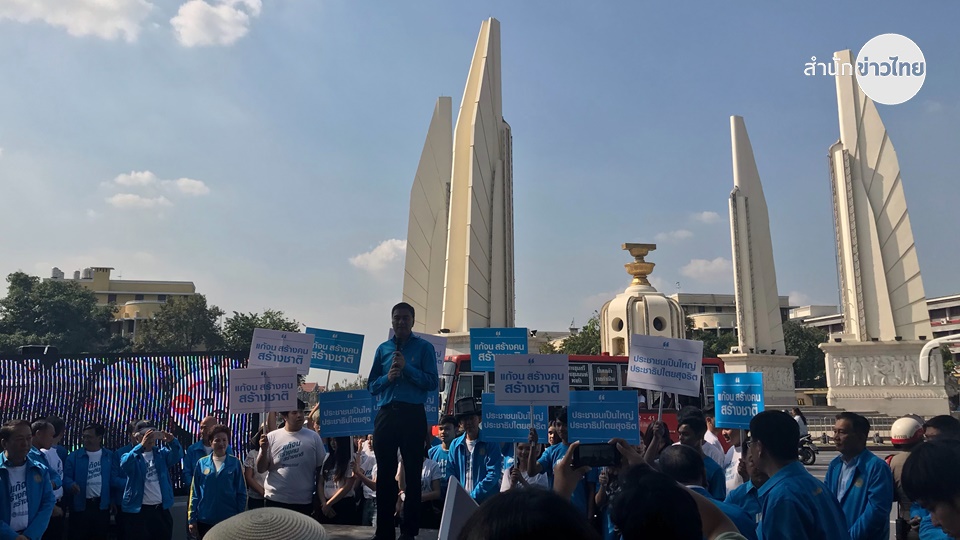 นายอภิสิทธิ์ เวชชาชีวะ หัวหน้าพรรคประชาธิปัตย์ พร้อมกรรมการบริหารพรรค และ 30 ว่าที่ผู้สมัครกรุงเทพมหานคร คิกออฟ แคมเปญ “นโยบายแก้จน สร้างคน สร้างชาติ” ที่บริเวณอนุสาวรีย์ประชาธิปไตย