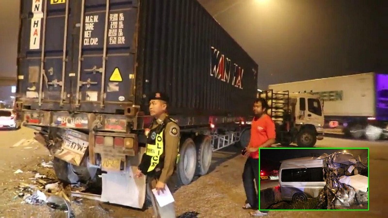 เสยท้ายพ่วงจุดกลับรถย่านบางปะกง คนขับรถตู้เสียชีวิต