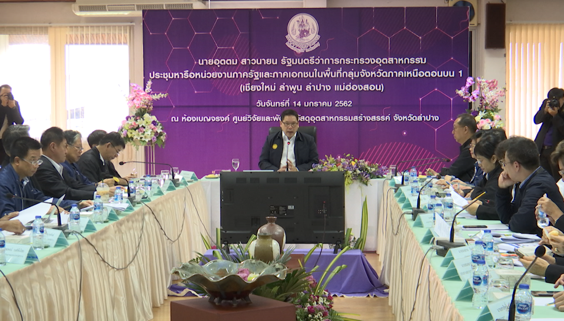 นายอุตตม สาวนายน รัฐมนตรีว่าการกระทรวงอุตสาหกรรม พร้อมด้วยนายพสุ โลหารชุน ปลัดกระทรวงอุตสาหกรรม และคณะผู้บริหารกระทรวงอุตสาหกรรม ได้หารือร่วมกับหัวหน้าส่วนราชการและภาคเอกชนในพื้นที่กลุ่มจังหวัดภาคเหนือตอนบน 1 (เชียงใหม่ ลำปาง ลำพูน แม่ฮ่องสอน) อาทิ สภาอุตสาหกรรมกลุ่มจังหวัดภาคเหนือตอนบน 1 สภาเกษตรกรกลุ่มภาคเหนือ สมาคมผู้ประกอบการไม้จังหวัดลำปาง ฯลฯ ในระหว่างการประชุมคณะรัฐมนตรีอย่างเป็นทางการนอกสถานที่ ณ ห้องประชุมศูนย์วิจัยและพัฒนาวัสดุอุตสาหกรรมสร้างสรรค์ จังหวัดลำปาง
