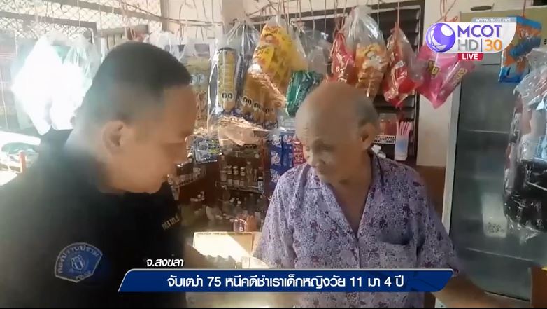 นราธิวาส 14 ม.ค.-กองปราบจับชายอายุ 75 ปี พยายามข่มขืนเด็กหญิงอายุ 11 ปีที่เป็นญาติกัน และหนีคดีจาก จ.ร้อยเอ็ด มาอยู่ อ.สุไหงโก-ลก 5 ปี สารภาพก่อเหตุจริง พยายามถึง 3 ครั้งแต่ไม่สำเร็จ