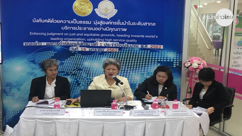 น.ส.รื่นวดี สุวรรณมงคล อธิบดีกรมบังคับคดี กระทรวงยุติธรรม แถลงผลการดำเนินงานไตรมาสที่ 1 ประจำปีงบประมาณ พ.ศ.2562 โดยการเร่งผลักดันทรัพย์สินออกจากระบบ ได้กำหนดค่าเป้าหมายในการผลักดันทรัพย์สินในปีงบประมาณ 2562 สูงกว่าปีงบประมาณที่ผ่านมา130,000 ล้านบาท ซึ่งในไตรมาสแรกสามารถผลักดันทรัพย์สินได้เป็นเงินจำนวน 46,274,145,932 บาท คิดเป็นร้อยละ 35.60 ของเป้าหมาย เมื่อเทียบกับช่วงเวลาเดียวกันของปีงบประมาณ พ.ศ.2561 สามารถผลักดันทรัพย์สินได้สูงกว่า คิดเป็นร้อยละ 44.59 โดยทรัพย์ประเภทห้องชุดขายทอดตลาดได้มาก ทำให้ขณะนี้มีทรัพย์ประเภทห้องชุดอยู่ในระบบ ร้อยละ 8
