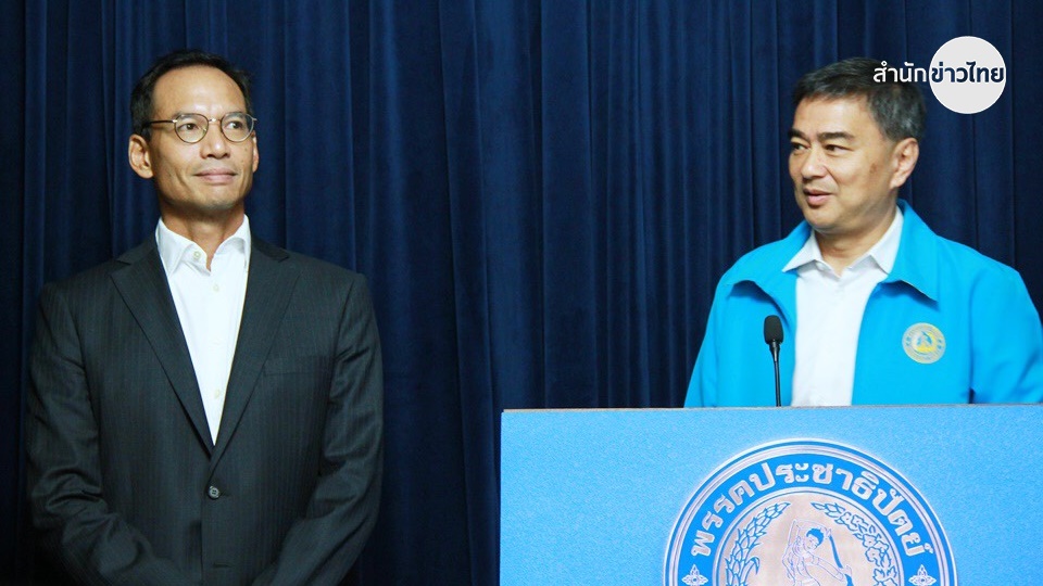 นายอภิสิทธิ์ เวชชาชีวะ หัวหน้าพรรคประชาธิปัตย์ พร้อมด้วยนายกรณ์ จาติกวณิช รองหัวหน้าพรรค และประธานกรรมการนโยบาย ร่วมกันแถลงนโยบายยกระดับครูไทย