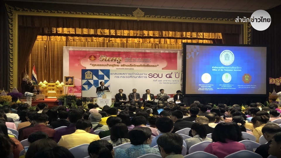 นพ.ธีระเกียรติ เจริญเศรษฐศิลป์ รัฐมนตรีว่าการกระทรวงศึกษาธิการ พร้อมด้วยนายการุณ สกุลประดิษฐ์ ปลัดกระทรวงศึกษาธิการและผู้บริหาร 5 องค์กรหลักของกระทรวงศึกษาธิการ (ศธ.) เเถลงผลงานการดำเนินงานของกระทรวงศึกษาธิการในรอบ 4 ปี ว่า ภาพรวมของการดำเนินงานของกระทรวงส่วนตัวพอใจ ที่ผ่านมาย้ำมาเสมอว่าปัญหาหลายเรื่องมีมานาน และสะสมการเริ่มต้นมองด้วยแง่ลบและพยายามเปลี่ยนแบบถอนรากถอนโคน ไม่สามารถทำได้กับการปฏิรูปการศึกษา แต่ควรขยับทีละนิดเป็นขั้นเป็นตอน ซึ่งตามยุทธศาสตร์ชาติ 20 ปีทั้ง 6 ด้าน ไม่ว่ารัฐบาลใดมาดูจะเห็นได้ว่ากำหนดไว้ครอบคลุม ยังลดความเหลื่อมล้ำ การปฏิรูประบบราชการ ซึ่งมองให้ดีจะเห็นได้ว่าหน่วยงานทำครบถ้วนและทุกคนก็ตั้งใจทำงาน