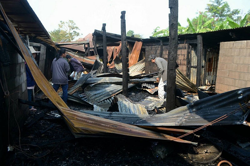 ราชบุรี 17 ม.ค.- คนงานตัดอ้อยราชบุรีกว่า 50 คน ต้องไร้ที่พักจากเหตุไฟไหม้บ่ายวันนี้ ลุกลามวอดทั้งแถบกว่า 22 ห้อง คาดสาเหตุไฟลัดวงจร