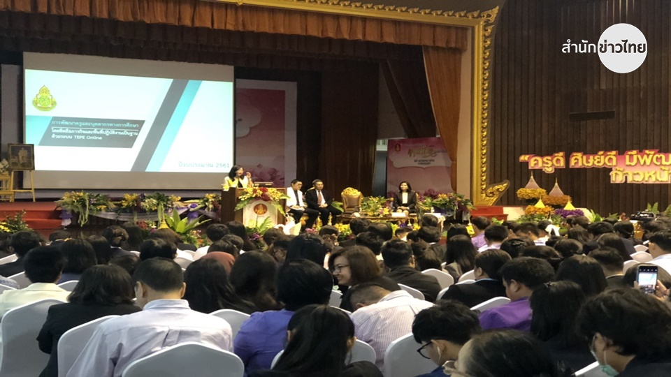 คุรุสภา 18 ม.ค.-คุรุสภา จัดเสวนาบนเส้นทางวิชาชีพครูยุคใหม่ เนื่องในวันครูเเห่งชาติครั้งที่ 63 ย้ำครูยุคใหม่ต้องมีจิตวิญญาณความเป็นครู มีความรู้ ยุค4.0 ไม่ใช่สอนเเค่เนื้อหา เเต่ต้องให้เด็กคิดเป็น วิเคราะห์ได้ อย่ามัวคำนึงความก้าวหน้าเเต่ควรมองว่า ได้พัฒนาเด็กมากแค่ไหน โดยมีครูให้ความสนใจร่วมฟังกว่า 400 คน
