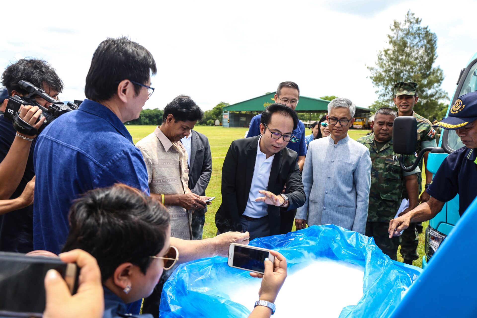บีไอจีได้ทำการส่งมอบน้ำแข็งแห้งซึ่งเป็นผลผลิตจากก๊าซคาร์บอนไดออกไซด์ของบริษัทฯ และแปรรูปเป็นน้ำแข็งแห้งแบบเกล็ดละเอียด ทั้งนี้ กรมฝนหลวงฯ สามารถนำไปใช้ปฏิบัติการทำฝนเทียมได้ทันที ซึ่งจะช่วยในการลดขั้นตอนการเตรียมน้ำแข็งแห้งสำหรับโปรยบริเวณกลุ่มเมฆในขั้นนตอนสุดท้าย (โจมตี) ของการทำฝนเทียม อีกทั้งยังง่ายต่อการขนส่งและจัดเก็บ