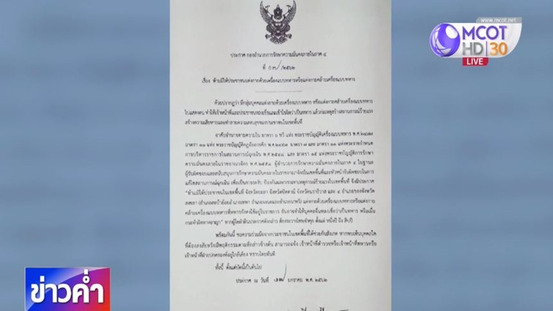 กองอำนวยการรักษาความมั่นคงภายในภาค 4 ออกประกาศห้ามประชาชนในพื้นที่ จ.ยะลา ปัตตานี นราธิวาส และ 4 อำเภอของ จ.สงขลา ประกอบด้วย อ.สะบ้าย้อย เทพา จะนะ และ อ.นาทวี ห้ามประชาชนแต่งกายเครื่องแบบทหาร หรือแต่งกายคล้ายเครื่องแบบทหาร โดยให้เหตุผลว่ามีกลุ่มบุคคลแต่งกายด้วยชุดดังกล่าวไปแสดงตน ทำให้เจ้าหน้าที่และประชาชนเข้าใจผิดว่าเป็นทหาร ก่อนก่อเหตุสร้างสถานการณ์ ทำลายความสงบสุขของประชาชนในเขตพื้นที่ เพื่อเป็นการป้องกันและบรรเทาเหตุการณ์ร้ายแรงดังกล่าว ผู้อำนวยการรักษาความมั่นคงภายในภาค 4 จึงออกหนังสือประกาศห้ามดังกล่าว หากฝ่าฝืนต้องระวางโทษจำคุก 1-10 ปี พร้อมขอความร่วมมือประชาชนในเขตพื้นที่ช่วยสังเกต หากพบเห็นบุคคลต้องสงสัย หรือมีพฤติกรรมแต่งกายเลียนแบบทหาร ให้แจ้งตำรวจ ทหาร หรือเจ้าหน้าที่ฝ่ายปกครองให้ทราบทันที.-สำนักข่าวไทย