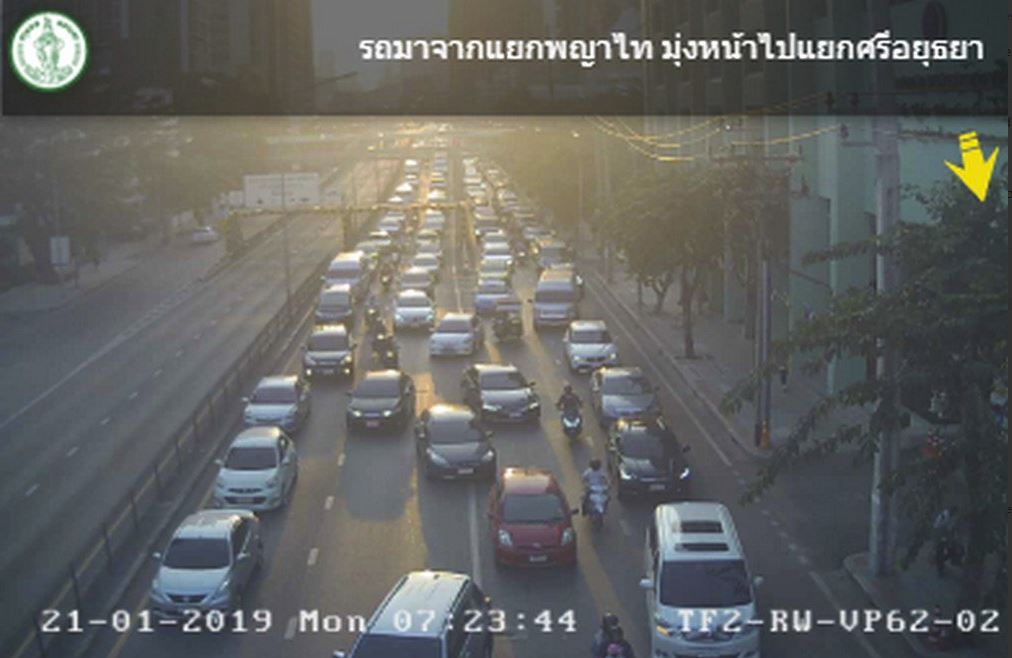 กทม. 21 ม.ค.-สวพ.FM91 รายงานจราจรเช้าวันจันทร์ ถนนศรีอยุธยา ขาออก มุ่งหน้าแยกศรีอยุธยา จราจรติดขัดมาก ส่วนถนนเพชรบุรี ผ่านแยกทองหล่อเหนือ ยังเคลื่อนตัวได้เรื่อยๆ