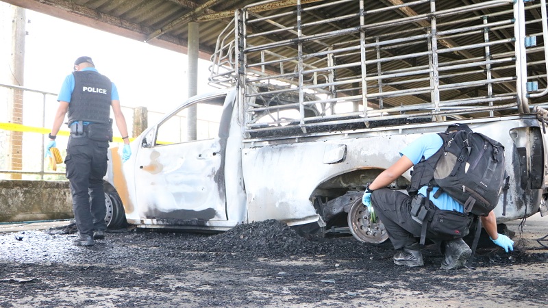 เมื่อเวลา 11.00 น. (21 ม.ค.) เจ้าหน้าที่ชุดวิทยาการและหน่วยปฏิบัติการพิเศษตำรวจภูธรจังหวัดนราธิวาส ลงพื้นที่ตรวจสอบเก็บหลักฐานอีกครั้ง เพื่อหาสาเหตุไฟไหม้รถยนต์ที่จอดอยู่ในโรงรถขององค์การบริหารส่วนตำบล (อบต.) ปะลุกาสาเมาะ อ.บาเจาะ เมื่อเวลา 03.30 น.วันนี้ เป็นรถกระบะ 4 ประตู สีบรอนซ์เงิน ทะเบียน บต 701 นราธิวาส บริเวณท้ายกระบะยังพบถ่านหุงต้มถูกเผาไหม้และไฟลุกลามทั้งคัน ห่างไปประมาณ 1 เมตร เป็นรถกระบะ 4 ประตูเช่นกัน สีบรอนซ์ทอง ทะเบียน กข 3972 นราธิวาส เป็นรถยนต์ของ อบต. เสียหายบางส่วน