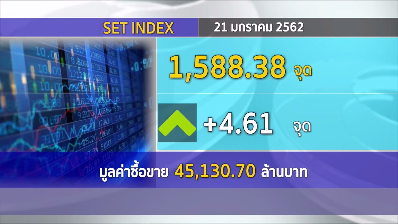 กทม. 21 ม.ค.-ตลาดหุ้นไทย (21 ม.ค.) ปิดการซื้อขายที่ 1,588.38 จุด บวก 4.61 จุด มูลค่าการซื้อขาย 45,130.70 ล้านบาท.-สำนักข่าวไทย