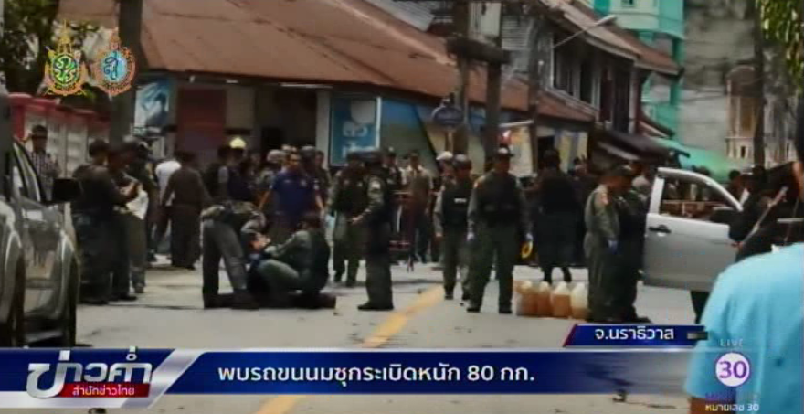 นราธิวาส 2 ก.ย.-หลังเกิดเหตุคนร้าย 6 คน ดักปล้นรถขนนมที่ อ.สายบุรี จ.ปัตตานี ซึ่งหลายฝ่ายคาดว่าอาจถูกนำไปก่อเหตุในวันสถาปนากลุ่มเบอร์ซาตู กระทั่งล่าสุดเจ้าหน้าที่พบรถคันดังกล่าว โดยภายในมีระเบิดแสวงเครื่องน้ำหนักถึง 80 กิโลกรัม ซุกซ่อนไว้เตรียมก่อเหตุที่ อ.แว้ง จ.นราธิวาส