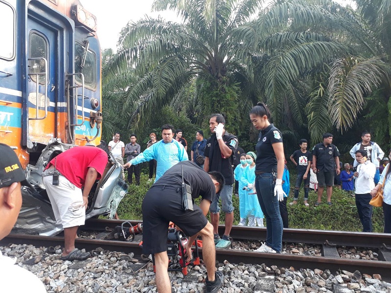 กรณีอุบัติเหตุหญิงวัย 34 ปี ขับรถกระบะแล่นข้ามทางรถไฟไม่มีเครื่องกั้นในพื้นที่บ้านเขาชวาลา ม.7 ต.คันธุลี อ.ท่าชนะ จ.สุราษฎร์ธานี ขณะพาลูกชาย อายุ 10 ปี ไปส่งโรงเรียน และถูกขบวนรถไฟด่วนพิเศษดีเซลราง กรุงเทพ-ยะลา ชนทับรถพังคันและทั้งสองเสียชีวิตเมื่อเช้าวันนี้ (22 ม.ค.)