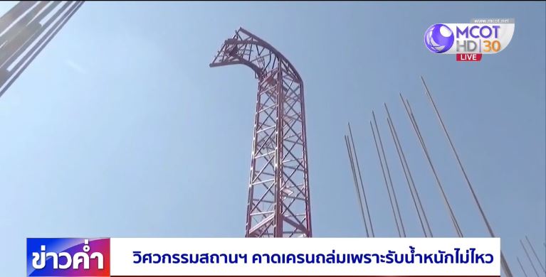 กรุงเทพฯ 23 ม.ค.- วิศวกรรมสถานแห่งประเทศไทยฯ เข้าตรวจสอบที่เกิดเหตุเครนถล่มทับคนงาน ระบุเป็นการพังถล่มลงมาของทาวเวอร์เครน คาดอาจพังถล่มเนื่องจากรับน้ำหนักไม่ไหว ขณะเพิ่มความสูงด้วยการต่อเครนท่อนสุดท้ายและปิดฝาบนตัวเครนแรงเกินไป