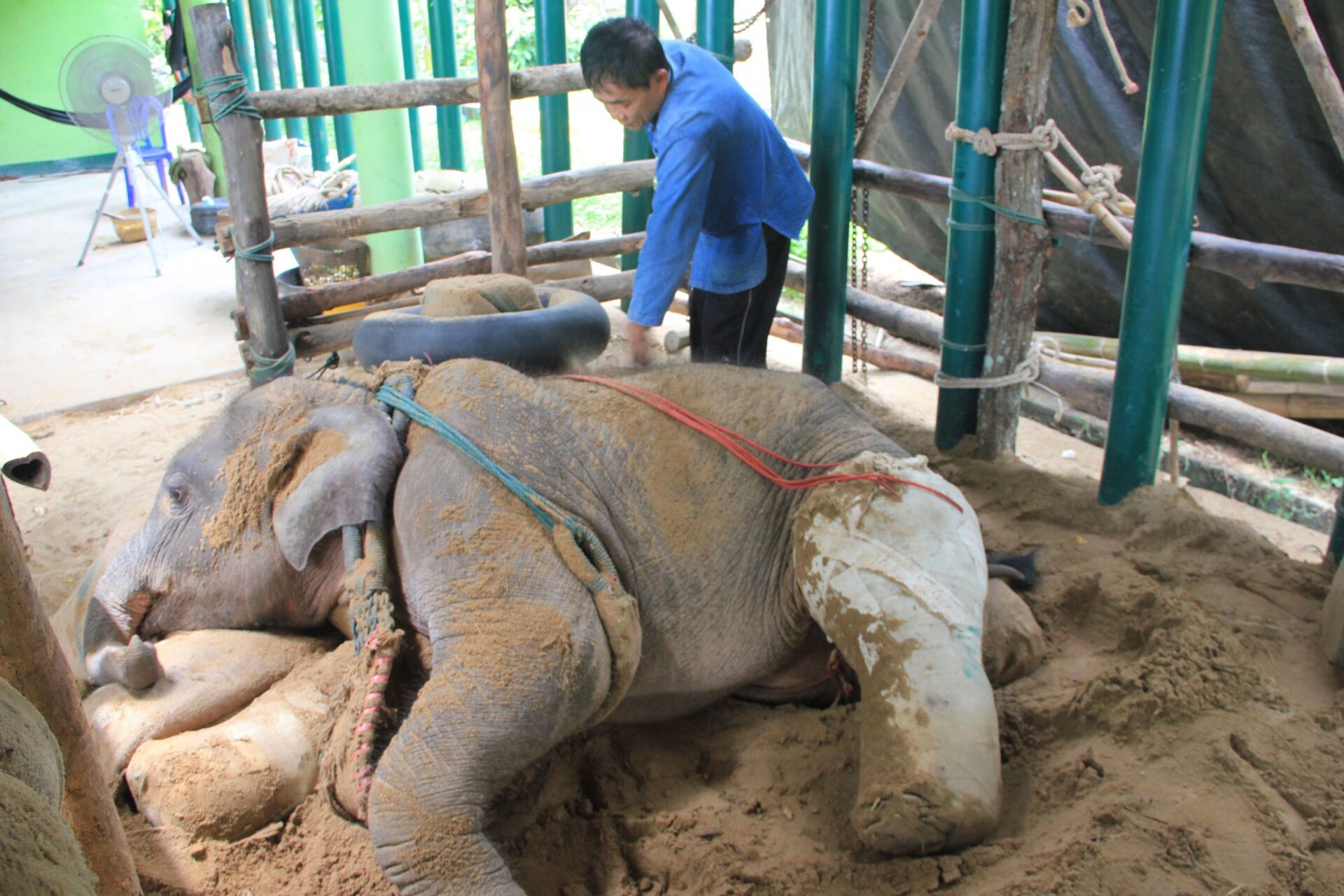 นายสัตวแพทย์สิทธิเดช มหาสาวังกุล หัวหน้าโรงพยาบาลช้าง ศูนย์อนุรักษ์ช้างไทย อ.ห้างฉัตร จ.ลำปาง เฝ้าดูแลอาการพลายศรีคำ อายุ 1 ปี 11 เดือน อย่างใกล้ชิดภายในโรงเรือนพยาบาลช้าง ซึ่งเป็นช้างกำพร้า เนื่องจากแม่ช้างล้มหลังให้กำเนิด ทำให้ลูกช้างไม่ได้กินนมแม่ ร่างกายอ่อนแอและขาดแคลเซียม แม้เจ้าของช้างใน อ.แม่ระมาด จ.ตาก จะยกช้างเชือกนี้ให้อยู่ในความดูแลของโรงพยาบาลช้าง เพื่อทำการรักษาอย่างใกล้ชิด แต่ก็ไม่สามารถที่จะรักษาอาการของช้างให้แข็งแรงสมบูรณ์ได้ เพราะนมแม่ช้างมีความสำคัญมากในการสร้างภูมิคุ้ม