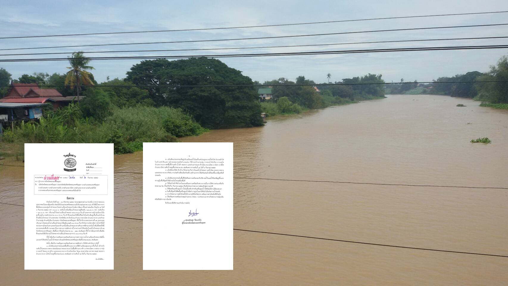 นายประยูร รัตนเสนีย์ ผู้ว่าราชการจังหวัดพระนครศรีอยุธยา ออกหนังสือประกาศด่วนที่สุดถึงทุกภาคส่วนในจังหวัดเฝ้าระวังพื้นที่ลุ่มต่ำแม่น้ำเจ้าพระยาและแม่น้ำน้อย รวมถึงคลองสาขา อาจเกิดภาวะน้ำล้นตลิ่งเข้าท่วมชุมชน ได้แก่ อ.บางบาล เสนา ผักไห่ และบางไทร เนื่องจากสำนักชลประทานที่ 12 จำเป็นต้องระบายน้ำท้ายเขื่อนเจ้าพระยาที่ 900 ลบ.ม./วินาที โดยประมาณการณ์ว่าจะมีน้ำเอ่อท่วมไม่น้อยกว่า 50 เซนติเมตร ในระยะ 1-2 วันนี้ ล่าสุดที่อำเภอบางบาล น้ำในคลองบางบาลเชื่อมแม่น้ำเจ้าพระยากับแม่น้ำน้อยได้เอ่อท่วมชุมชนแล้วในตำบลบางบาลและตำบลไทรน้อย