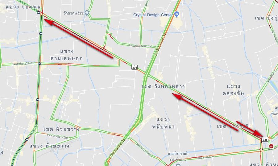 ถนนลาดพร้าว ขาเข้า ผ่านแยกมหาดไทย รถติดขัด ท้ายสะสมตรงข้าม รพ.เวชธานี พ้นแล้วจะติดขัดอีกครั้ง เข้าแยกรัชดา-ลาดพร้าว ท้ายสะสมที่แยกลาดพร้าว 64 ส่วนฝั่งขาออก มีชะลอตัวเข้าแยกบางกะปิเล็กน้อย