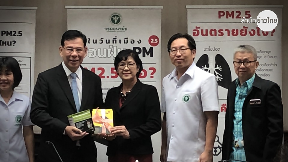 สธ.25 ม.ค.-ปลัดสธ.ประชุม5 จังหวัดปริมณฑลที่มีค่าฝุ่นละอองขนาดเล็ก PM2.5 สูง แจกแผ่นพับ หน้ากากอนามัย ทำความเข้าใจประชาชน พร้อมห่วงการจัดกิจกรรมวิ่งในพื้นที่วิกฤตสีแดงอาจส่งผลต่อสุขภาพ โดยเฉพาะวิ่งมาธอน เพราะต้องใช้อากาศมากถึง 10 เท่า