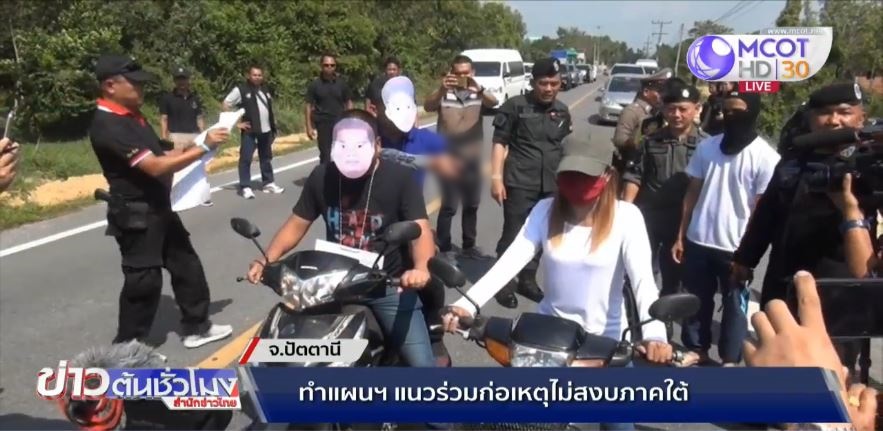 ปัตตานี 25 ม.ค.- เจ้าหน้าที่คุมตัวผู้ต้องหาทำแผนประกอบคำรับสารภาพคดีขี่จักรยานยนต์ประกบยิงหญิงวัย 59 ปี ในพื้นที่ อ.โคกโพธิ์ จ.ปัตตานี เมื่อวันที่ 29 ธ.ค. โดยผู้ต้องหาสารภาพเป็นสมาชิกกลุ่มก่อเหตุรุนแรงตั้งแต่ปี 53 ยอมรับทำหน้าที่เฝ้าดูเป้าหมาย และมีผู้ร่วมขบวนการอีก 3 คน