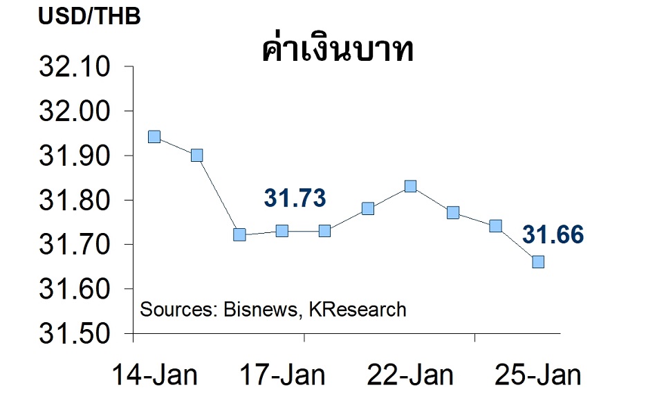 31.66 เทียบกับระดับ 31.73 บาทต่อดอลลาร์ฯ ในวันศุกร์ก่อนหน้า (18 ม.ค.)