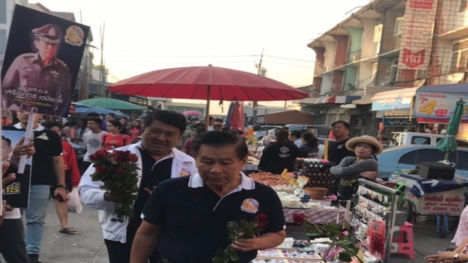 พลตำรวจเอกเสรีพิศุทธ์ เตมียเวส หัวหน้าพรรคเสรีรวมไทย พร้อมคณะกรรมการบริหารและว่าที่ผู้สมัคร ส.ส.ของพรรค ลงพื้นที่พบปะประชาชนที่ตลาดน้ำไทรน้อย จังหวัดนนทบุรี หลังเปิดศูนย์ประสานงานพรรค เขตเลือกตั้งที่ 3 จังหวัดนนทบุรี โดยระหว่างการพบปะประชาชนมีตัวแทนกลุ่มผู้ค้าขายในอำเภอบางใหญ่ ได้เข้ามอบช่อดอกไม้และสะท้อนปัญหา ที่ได้รับผลกระทบจากการจัดระเบียบหาบเร่แผงลอยของรัฐบาล คสช.ด้วย