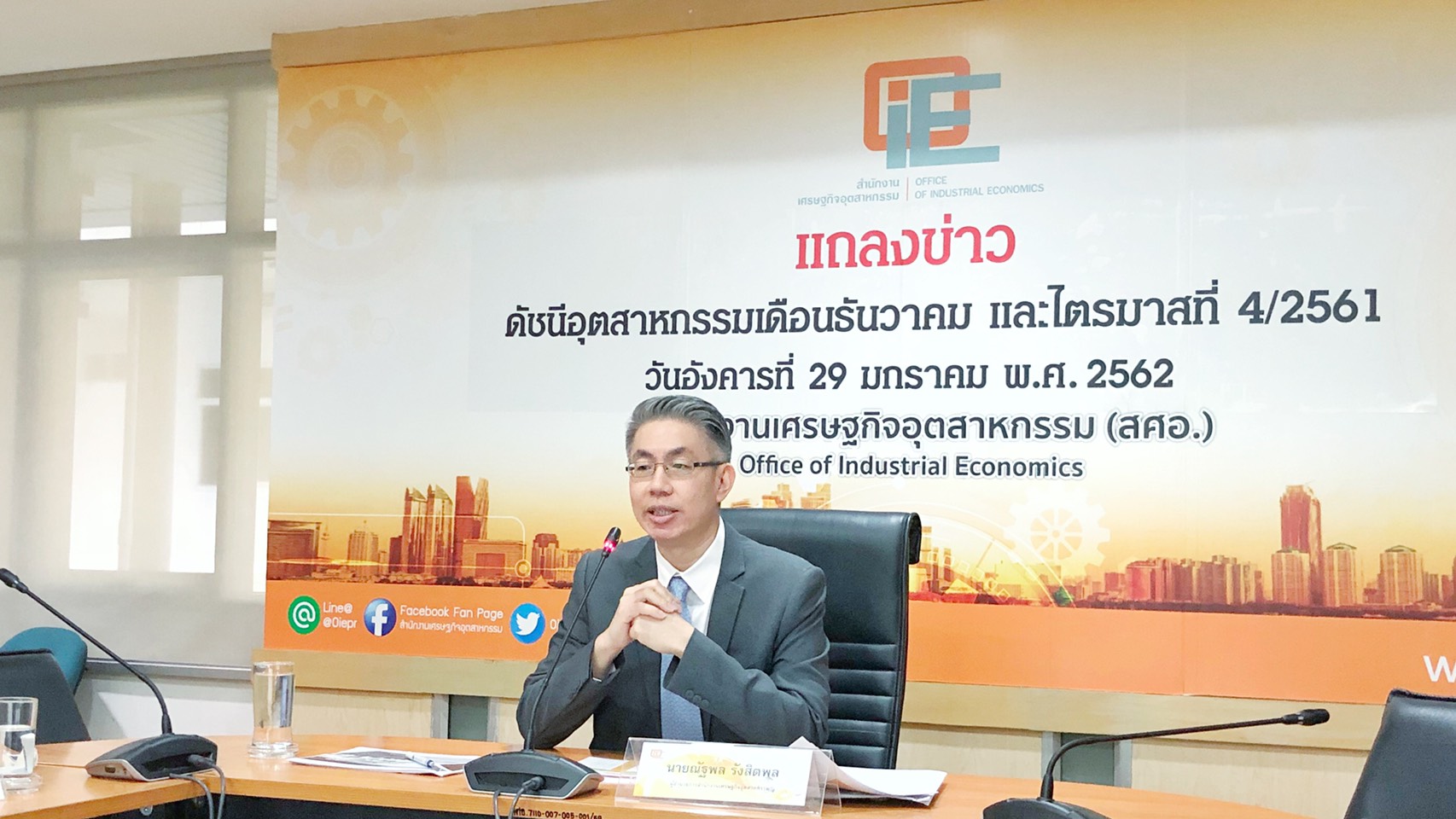 กรุงเทพฯ 29 ม.ค.- สศอ.เผยดัชนีผลผลิตอุตสาหกรรม ธ.ค.โตร้อยละ 0.75 ไตรมาส 4 โตร้อยละ 2.43 ส่งผลตลอดปี 2561 ดัชนีฯ โตร้อยละ 2.8 จากเป้าหมายร้อยละ 2.5-3 ส่วนปี 2562 ตั้งเป้าโตร้อยละ 2-3