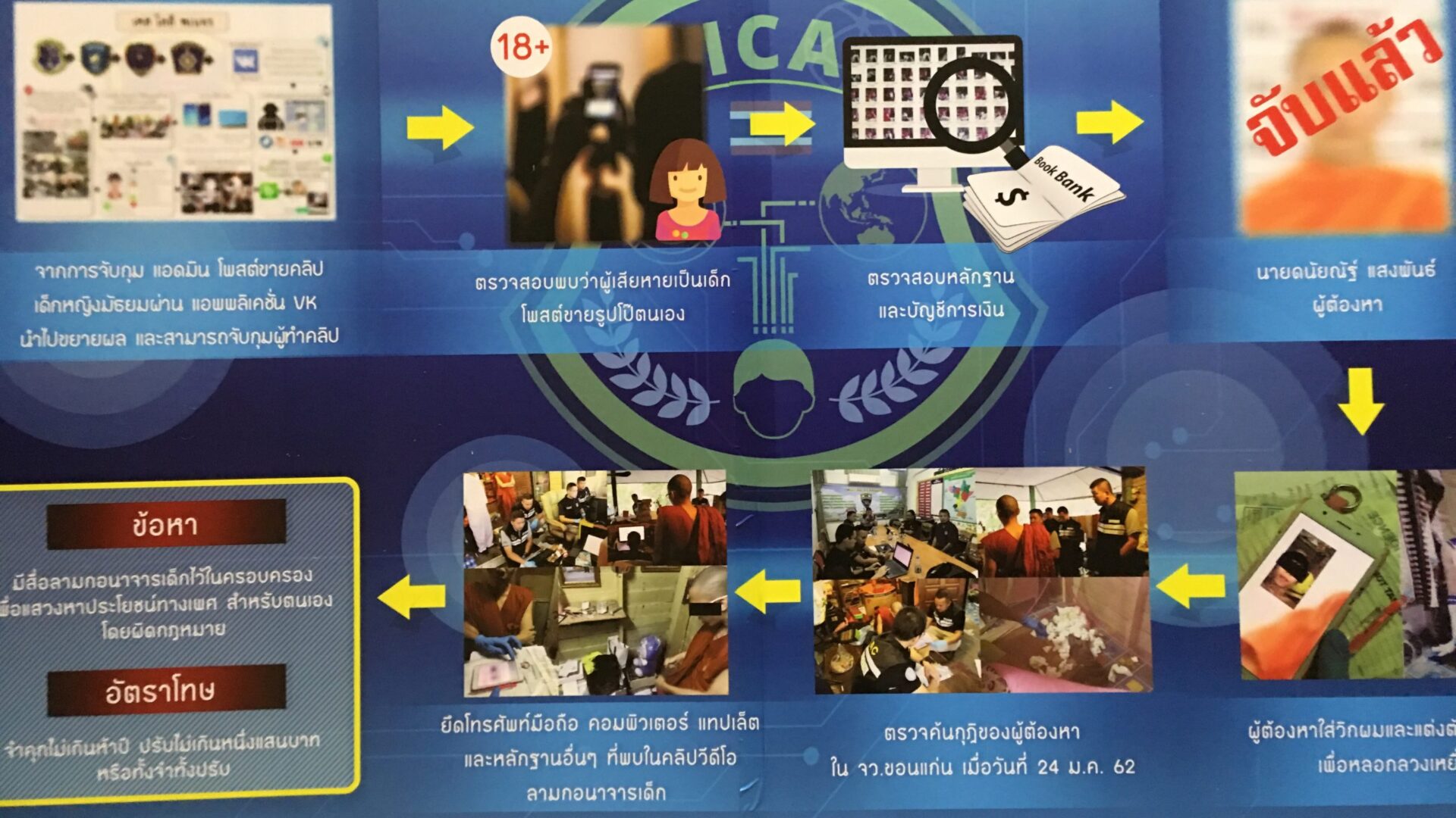 นอกจากนี้ ชุดปฎิบัติการ TICAC ยังจับกุมนายดนัยณัฐ์ แสงพันธ์ อดีตพระลูกวัดในขอนแก่น หลังพบพฤติกรรมเผยแพร่สื่อลามกเด็กนักเรียนหญิง ชั้นประถมและมัธยม แพร่ในกลุ่มไลน์และแอพพลิเคชั่น VK ของรัสเซีย พฤติกการณ์คือจะค้นหาเด็กผู้หญิงอายุน้อยจากแอพ Bee Talk มาพูดคุยเปิดกล้องบนแอพไลน์ ขณะพูดคุยจะปกปิดความเป็นพระ โดยสวมวิกผมและแต่งชุดคอสเพลเด็กนักเรียนญี่ปุ่นแล้วพูดคุยชักชวนให้เด็กหญิงเปลือยกายหรือส่งภาพและคลิปเปลือยมาให้เพื่อเก็บสะสมและใช้สำเร็จความใคร่ มีเด็กหญิงตกเป็นเหยื่อจำนวนมาก จากการสืบสวนทราบว่ากลุ่ม VK มีการเผยแพร่ในประเทศรัสเชีย เพราะสามารถโพสต์อะไรได้อย่างอิสระ ผู้ที่จะเข้าไปดูต้องเสียค่าสมัคร 500-1,000บาท ต่อเดือน เบื้องต้นถูกตั้งข้อหา มีสื่อลามกอนาจารเด็กไว้ในความครอบครองเพื่อแสวงหาประโยชน์ทางเพศสำหรับตนเองโดยผิดกฎหมาย.-สำนักข่าวไทย