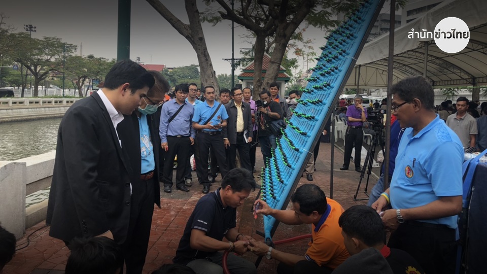 พล.อ.สุรเชษฐ์ กล่าวว่า วันนี้สอศ.ได้จัดนักศึกษาจากสถานศึกษาอาชีว ศึกษารัฐในกรุงเทพมหานคร 21แห่งเเละภาคกลาง-ภาคตะวันออก79 แห่ง รวมทั้งสิ้น 100แห่งมาช่วยกันทำสิ่งประดิษฐ์นวัตกรรมเครื่องพ่นละอองน้ำ ซึ่งทำการวิจัยพบว่าร้อยละ70 สามารถลดปัญหาฝุ่นละอองได้ โดยคาดว่าระยะเวลา 2 วัน (31 ม.ค.-1 ก.พ.62)ของการเปิดพื้นที่นี้ สามารถผลิตเครื่องพ่นละอองน้ำได้ 250 เครื่องเเละจะเเจกจ่ายไปยังสถานศึกษาที่อยู่ในพื้นที่เสี่ยง สถานที่ส่วนราชการเเละพื้นที่ที่มีค่าฝุ่นละอองสูงเกินมาตรฐานตามการวัดค่าฝุ่นละอองของกรมควบคุมมลพิษ