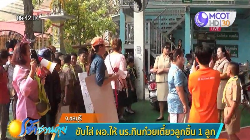 ชลบุรี 1 ก.พ.-ชาวบ้านอ่าวอุดม อ.ศรีราชา จ.ชลบุรี รวมตัวขับไล่ ผอ.โรงเรียนแห่งหนึ่ง อ้างพบพิรุธเรื่องอาหารกลางวัน ให้นักเรียนกินก๋วยเตี๋ยวลูกชิ้น 1 ลูก และปัญหาการเบิกจ่ายเงินสนับสนุนทุนการศึกษา
