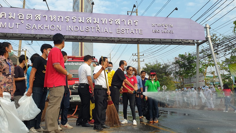 ขณะเดียวกันนิคมอุตสาหกรรม 2 แห่ง ในจังหวัดสมุทรสาคร คือ นิคมอุตสาหกรรมสมุทรสาคร กับนิคมอุตสาหกรรมสินสาคร พร้อมพนักงานกว่า 1,000 คน ร่วมกับจังหวัดและหลายส่วนราชการ นำโดยนายสมคิด จันทมฤก ผู้ว่าราชการจังหวัดสมุทรสาคร จัดกิจกรรมบิ๊กคลีนนิ่งเดย์ล้างถนนทุกเส้นทางภายในนิคมฯ กับพื้นที่โดยรอบโรงงานของแต่ละบริษัท เพื่อป้องกันฝุ่นละอองกระจายตัว