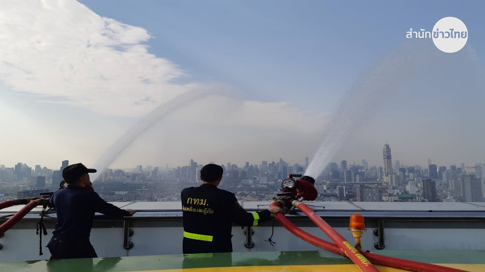 ดินแดง 3 ก.พ.-กทม.ระดมเจ้าหน้าที่ ฉีดน้ำบนตึกสูงตลอดทั้งวัน หลังส่งหนังสือขอความร่วมมือ ผู้ประกอบการตึกสูง 3,200 แห่ง ฉีดน้ำพร้อมกัน เริ่มวันนี้วันแรก