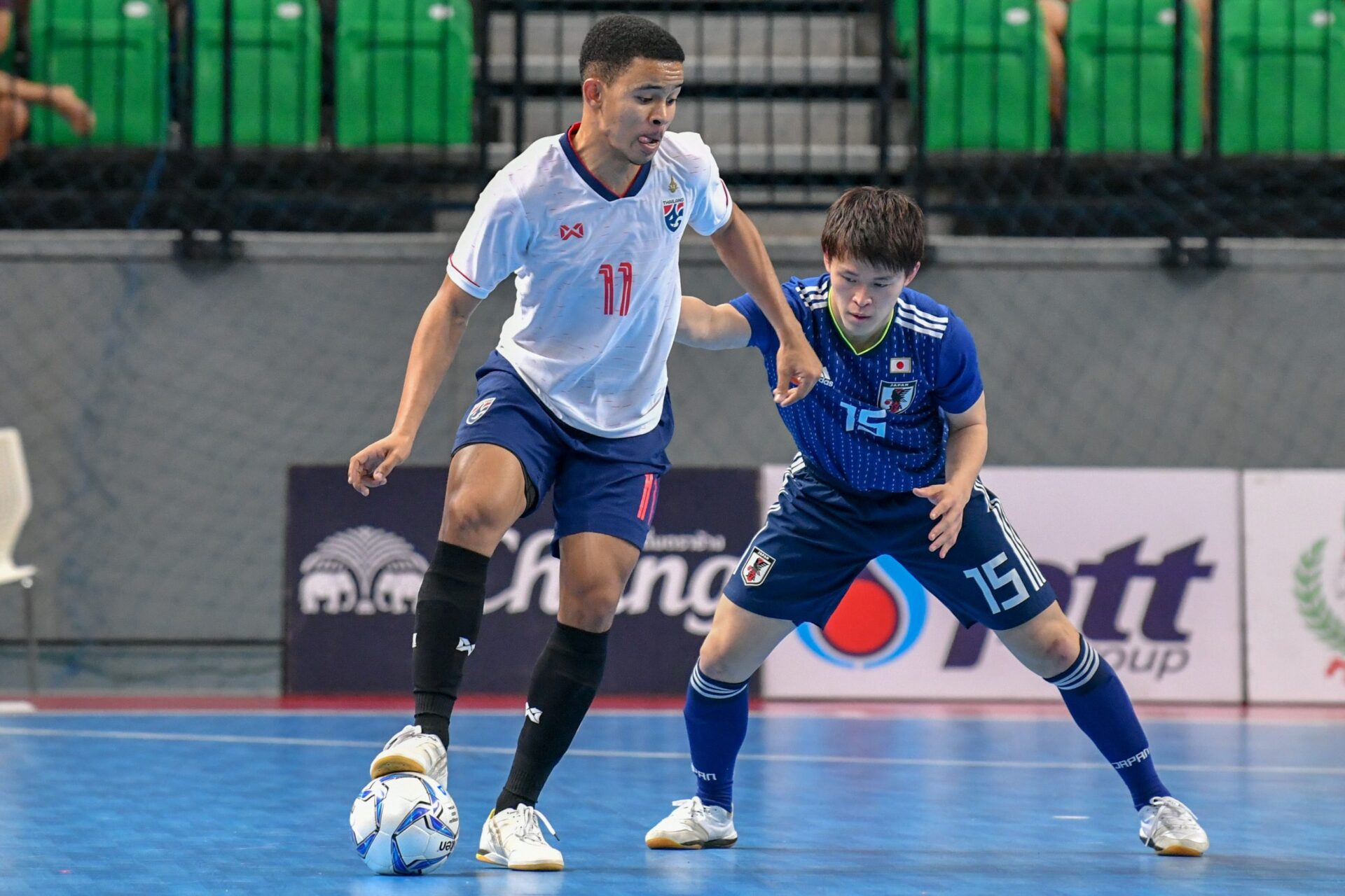 กลับมาครึ่งหลัง น.22 กฤษดา วงษ์แก้ว ไปแสดงความไม่พอใจหลังทำฟาวล์ผู้เล่นญี่ปุ่น ผู้ตัดสินแจกใบเหลืองเป็นคนแรก น.24 ไทยทำเกมบุกได้ดีก่อนที่ อภิวัฒน์ แจ่มเจริญ จะหาช่องซัดจากริมเส้นฝั่งซ้ายบอลพุ่งโด่งข้ามคานออกไป น.29 ญี่ปุ่นได้เล่นคิกอินทางฝั่งขวา คาซุยะ เขี่ยสั้นให้ โยชิคาวะ อัดเต็มแรง คฑาวุธ หาญคำภา ปัดทิ้งไว้ได้ทัน ญี่ปุ่นยังกดดันไทย น.30 นิบูยะ คาซูฮิโร่ ได้จังหวะยิงตรงกลางประตู คฑาวุธ หาญคำภา ยังเหนียวล้มตัวใช้ขาเซฟไว้ทัน น.31 แข้งซามูไรก็มาได้ประตูที่สอง เมื่อต่อบอลกันอย่างสวยทางฝั่งขวา ก่อนที่ คาโตะ มินามิ จะไขว้หลังให้ มินาโมโตะ อากิระ ซัดเสียบมุมบนเข้าไป ญี่ปุ่นนำ 2-0 น.33 มินามิ อีกครั้งที่หาจังหวะซัดไกล แต่ลูกนี้ คฑาวุธ หาญคำภา ปัดเซฟไว้ทัน น.35 ไทยได้คิกอินทางซ้าย กฤษดา วงษ์แก้ว จ่ายยัดเข้ากลางให้ จิรวัฒน์ สอนวิเชียร ยิงแต่ก็ข้ามคานไป นาทีเดียวกัน คาซูฮิโร่ ไปเจตนาใช้มือเล่นบอล รับใบเหลืองอีกราย ท้ายเกมไทยหันมาเล่นพาวเวอร์เพลย์ แต่ น.38 พลาด ญี่ปุ่นตัดบอลได้เล่นบอลยาวให้ โตโมกิ โยชิคาว่า ยิงโล่งๆเข้าไปเป็น 3-0 เวลาที่เหลือไทยยังเล่นพาวเวอร์เพลย์หวังตีไข่แตกให้ได้ แต่ญี่ปุ่นก็ตั้งรับได้เหนียวแน่น จบเกมการแข่งขันเป็นญี่ปุ่นที่ย้ำแค้นเอาชนะไทยไปอีกนัดด้วยสกอร์ 3-0