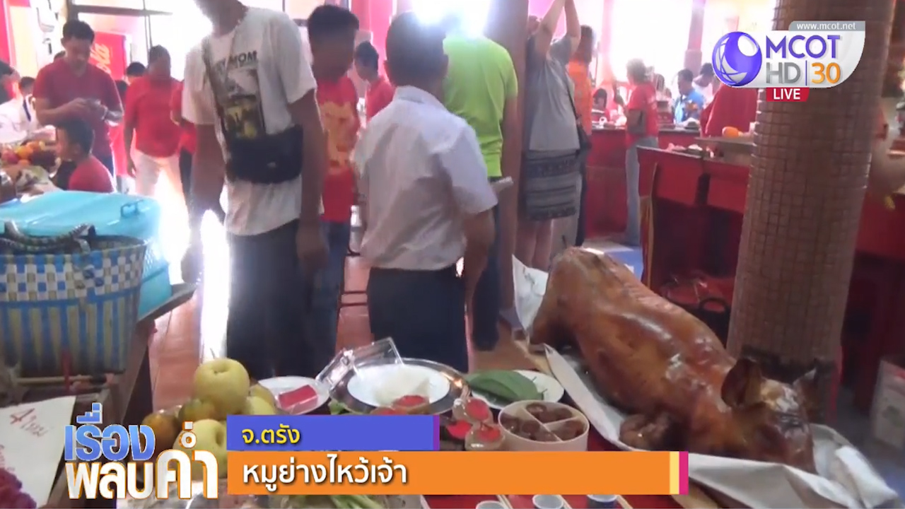 ตรัง 4 ก.พ.-ชาวไทยเชื้อสายจีนใน จ.ตรัง นำหมูย่างเซ่นไหว้ขอพร แก้บนองค์พระท่ามกงเยี่ย ขณะที่ตำบลบางพระ จ.ชลบุรี ทำประทัดลูกโป่งลดฝุ่น 1,000 ลูก