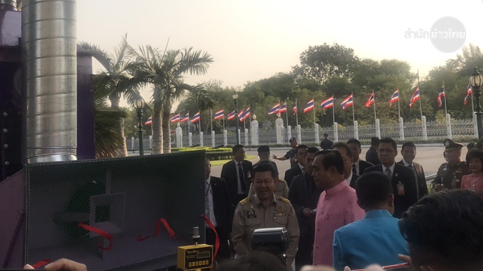 นายกรัฐมนตรี กล่าวว่า หลายคนอย่าไปหัวเราะ ขอให้ช่วยกันคนละอย่างสองอย่างหากไม่ร่วมมือกันก็จะไม่สำเร็จ และขอให้นำเครื่องดังกล่าวไปหาจุดติดตั้ง โดยเฉพาะจุดที่มีรถติดมาก ๆ เช่น ศูนย์การค้าและบริเวณหน้าโรงเรียน รัฐบาลพยายามขับเคลื่อนอย่างเต็มที่ โดยมีข้อมูลเรื่องฝุ่นให้ประชาชนรับรู้ทั้งปี ไม่ใช่แค่ต้นปีและปลายปี และขอให้ไปทำความเข้าใจกับประชาชนว่าอย่าตื่นตระหนก
