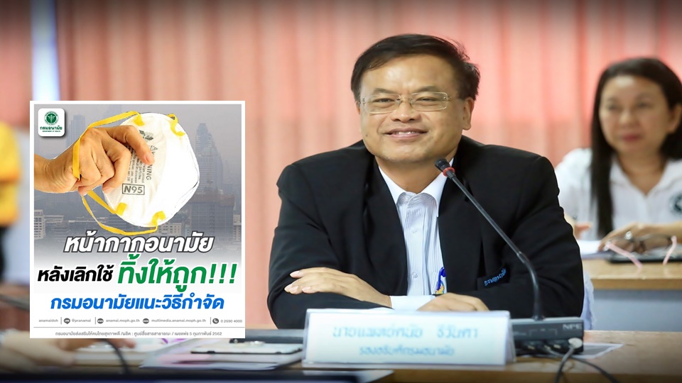 กรมอนามัย 6 ก.พ.-กรมอนามัย แนะประชาชนเลือกใช้หน้ากากป้องกันฝุ่นละอองให้เหมาะสม พร้อมกำจัดหน้ากากอนามัยอย่างถูกวิธี