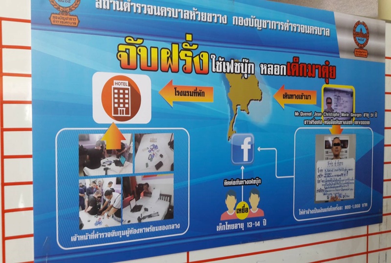 กรุงเทพฯ 6 ก.พ.- สืบห้วยขวาง ตามแกะรอยจับกุมครูสอนภาษาชาวฝรั่งเศส เข้ามาเที่ยวเมืองไทย แอบแฝงล่อลวงเด็กชายไปกระทำชำเราถึงห้องพัก อ้างจะสอนภาษาให้ฟรีและให้ค่าจ้างครั้งละ800- 1000 บาท