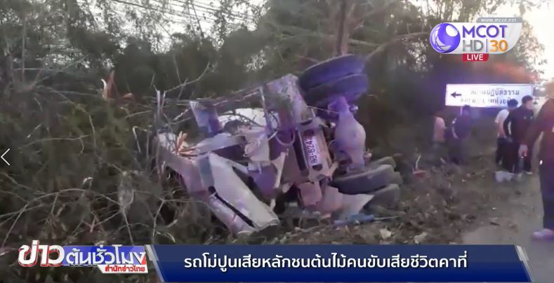 ลำปาง 6 ก.พ.-รถโม่ปูนเสียหลักพลิกคว่ำชนอัดกับต้นไม้ บนถนนสายลำปาง-งาว จ.ลำปาง คนขับดับคาที่