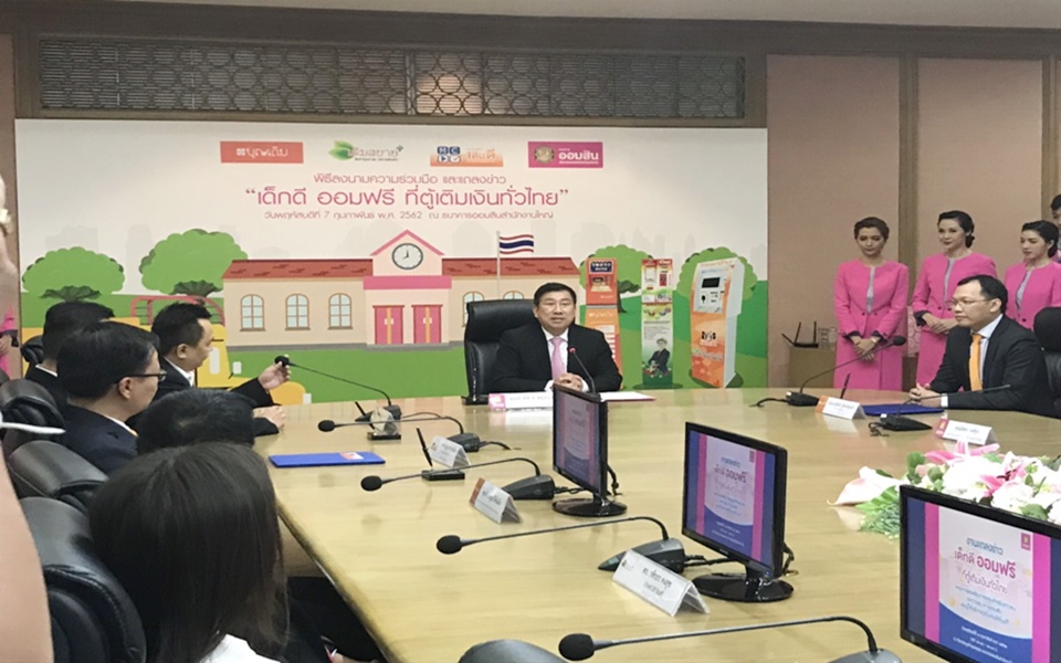 นายชาติชาย พยุหนาวีชัย ผู้อำนวยการธนาคารออมสิน เปิดเผยว่า ธนาคารออมสินได้นำเสนอนวัตกรรมด้านการออมด้วยรูปแบบ Banking Agent ร่วมกับ บริษัท ฟอร์ท สมาร์ท เซอร์วิส จำกัด (มหาชน) ผู้ให้บริการ “ตู้บุญเติม” บริษัท สบาย เทคโนโลยี จำกัด ผู้ให้บริการ “ตู้เติมสบายพลัส” และ บริษัท มีเดีย เซ็นเตอร์ จำกัด ผู้ให้บริการ “ตู้เติมดี” ส่งเสริมการออมให้เยาวชนไทยในโครงการ “เด็กดี ออมฟรี ที่ตู้เติมเงินทั่วไทย” ผ่านตู้เติมเงินทั้ง 3 บริษัท ที่มีให้บริการทั่วประเทศรวมแล้วกว่า 211,000 จุด โดยตู้บุญเติมมีกว่า 130,000 ตู้ ตู้เติมสบายพลัสกว่า 46,000 ตู้ และตู้เติมดีอีกกว่า 35,000 ตู้ เปิดให้ประชาชนทั่วไปและลูกค้าธนาคารออมสินทุกช่วงอายุฝากเงินได้ตั้งแต่ 1 บาทขึ้นไป โดยที่เยาวชนอายุ 7-20 ปี ไม่เสียค่าธรรมเนียมในการบริการ ซึ่งขณะนี้อยู่ระหว่างดำเนินการขออนุญาตจากธนาคารแห่งประเทศไทย คาดว่าจะเปิดให้บริการได้ในวันออมสิน คือ วันที่ 1 เมษายน 2562 นี้