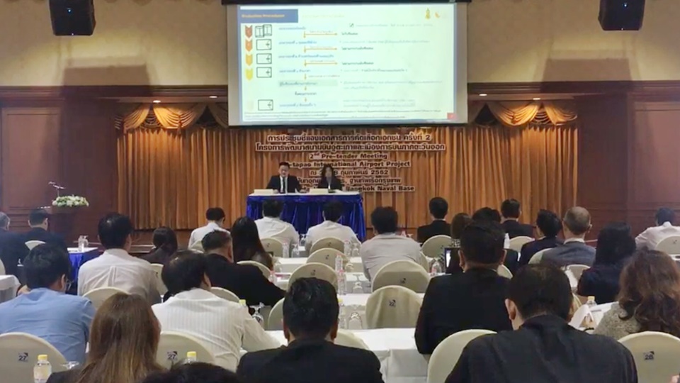กรุงเทพฯ 8 ก.พ. – กองทัพเรือแจงเอกชนรอบ 2 ก่อนจะเปิดรับซองประมูลโครงการพัฒนาสนามบินอู่ตะเภาและเมืองการบินภาคตะวันออก 28 ก.พ.นี้